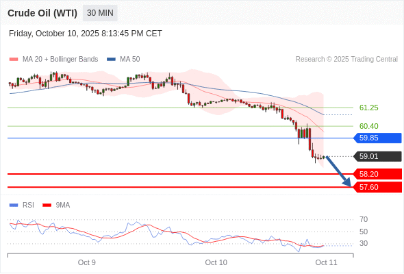 在 59.85 之下,看跌,目标价位为 58.20 ,然后为 57.60 。