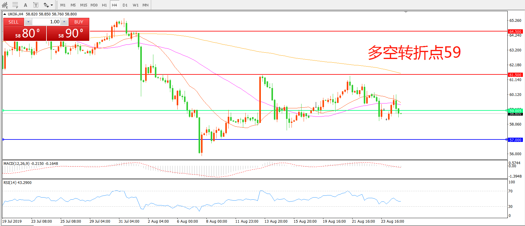 交易策略:在59.00之下看跌,目标57.00 53.00