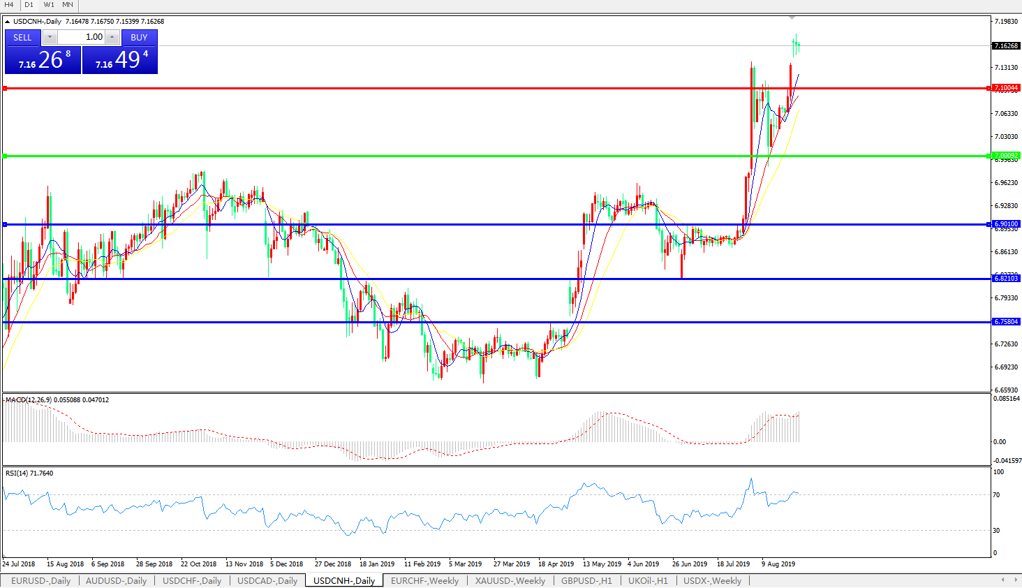 美元兑人民币USDCNH    日线图: