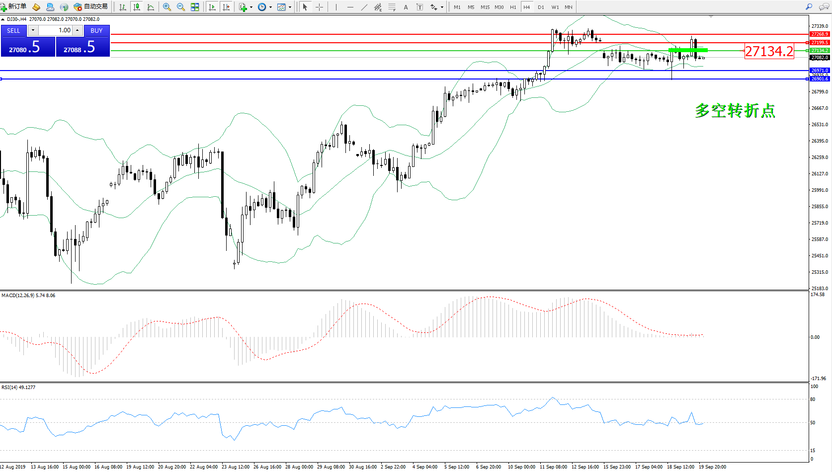 道琼斯指数9月19日(周四)收盘下跌52.90点,跌幅0.19%,报27094.18点。美联储进行今年第二次降息,帮助维持经济扩张,但对于未来是否进一步降息发出了模棱两可的信号;世界各国央行面临着越来越大的压力,要求它们效仿美国为经济提供货币支持,因中美贸易争端损害了全球经济增长;中美副部长级贸易谈判代表定于昨日恢复谈判,这是近两个月来的首次面对面磋商。