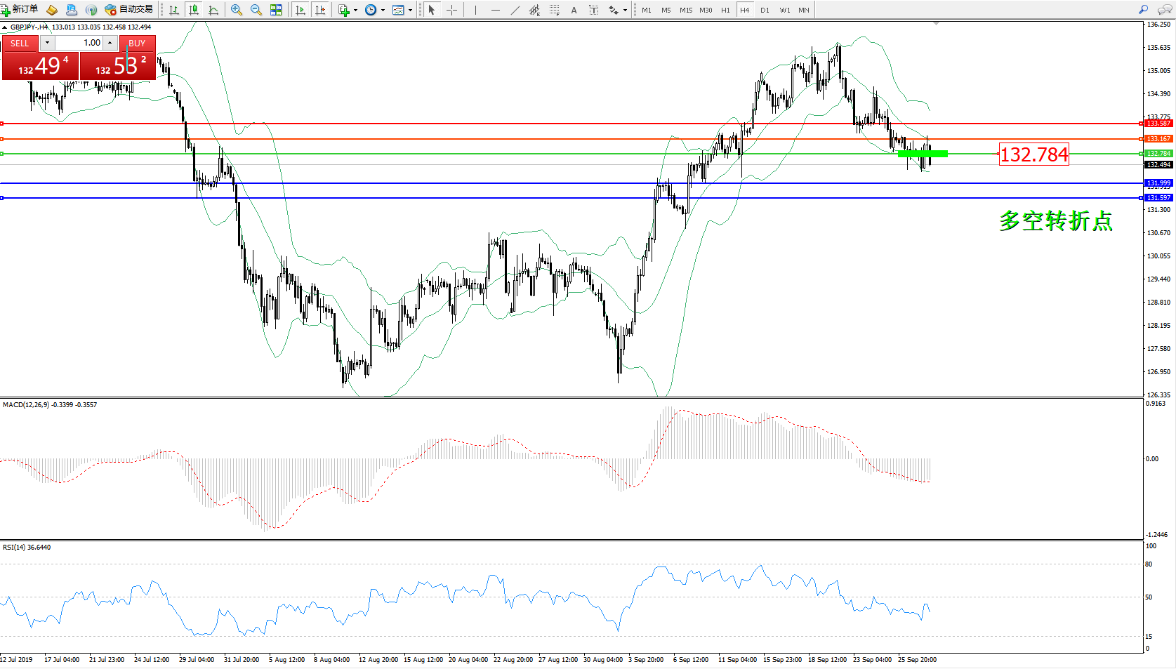 交易策略:132.784下方看跌,目标131.999131.597