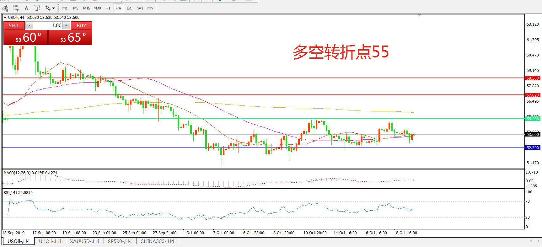 周一(10月20日),英国议会依然未能就新版脱欧协议举行投票,这令最终能否有协议脱欧通过成疑,而全球经济放缓迹象令投资者对供应过剩担忧重燃,美国油服公司贝克休斯上周公布数据显示,美国石油活跃钻井数增加1座至713座,利空油价,美国WTI原油维持低位震荡,最终收报53.52美元/桶。