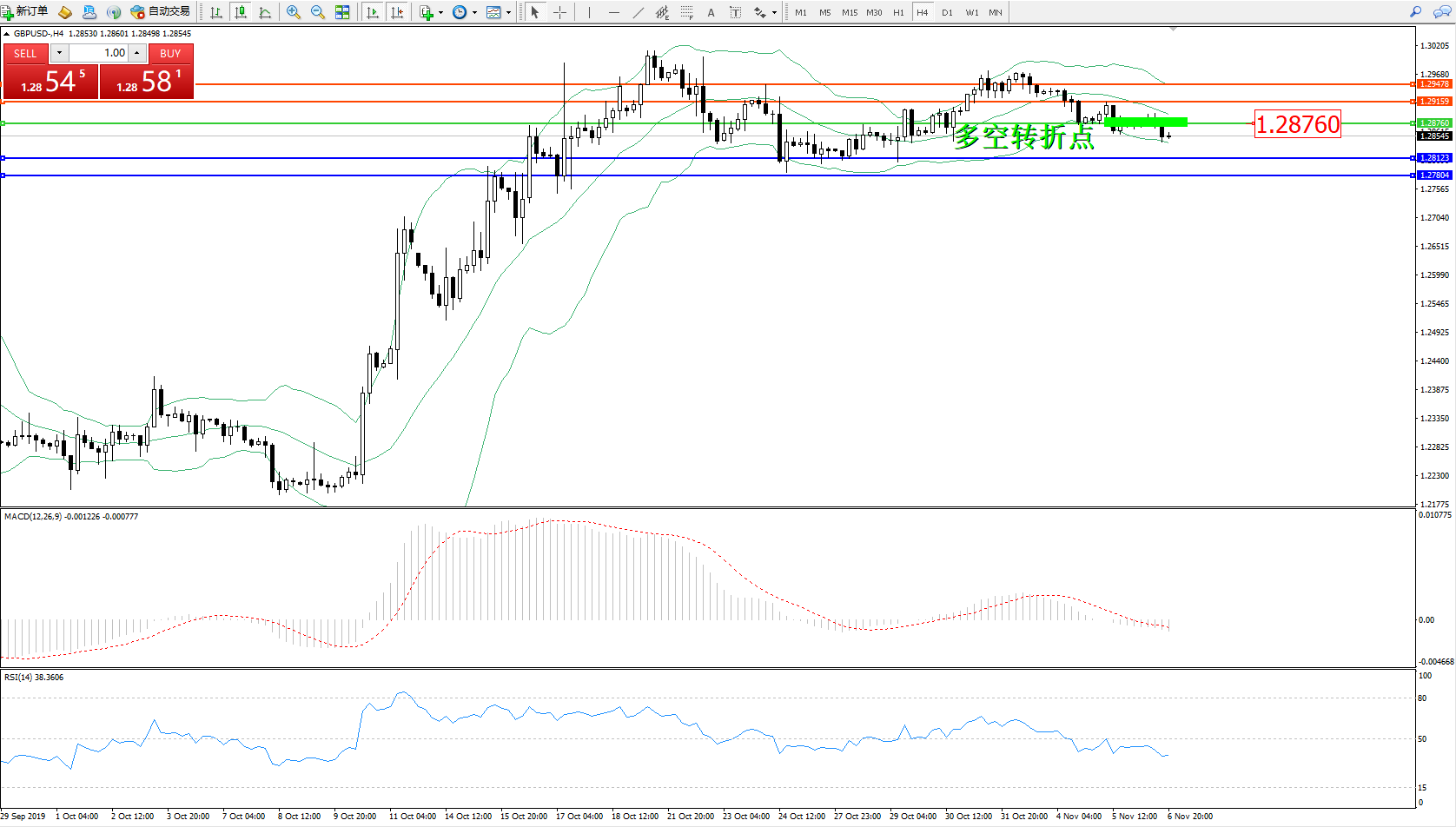 交易策略:1.28760下方看跌,目标1.28123、1.27804