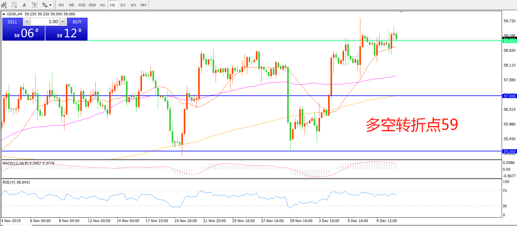 多空转折点:59.00