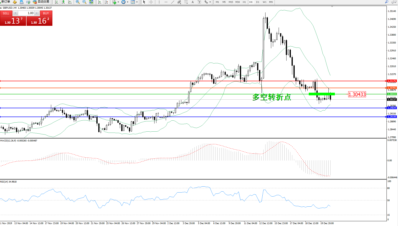 交易策略:1.30433下方看跌,目标1.29649、1.29149