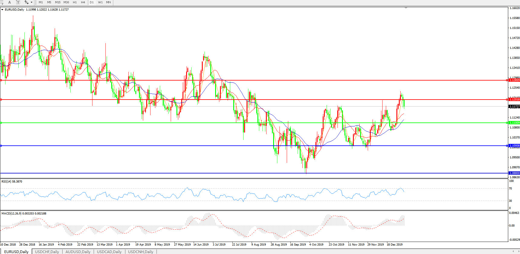 技术面简析:日图均线呈有序多头排列,汇价昨日骤跌下破1.12关口,MACD运行于0轴上方但量能有缩量迹象 ,RSI拐头下行趋弱,预计汇价大概率将进一步回踩整理,中期看涨格局不变。