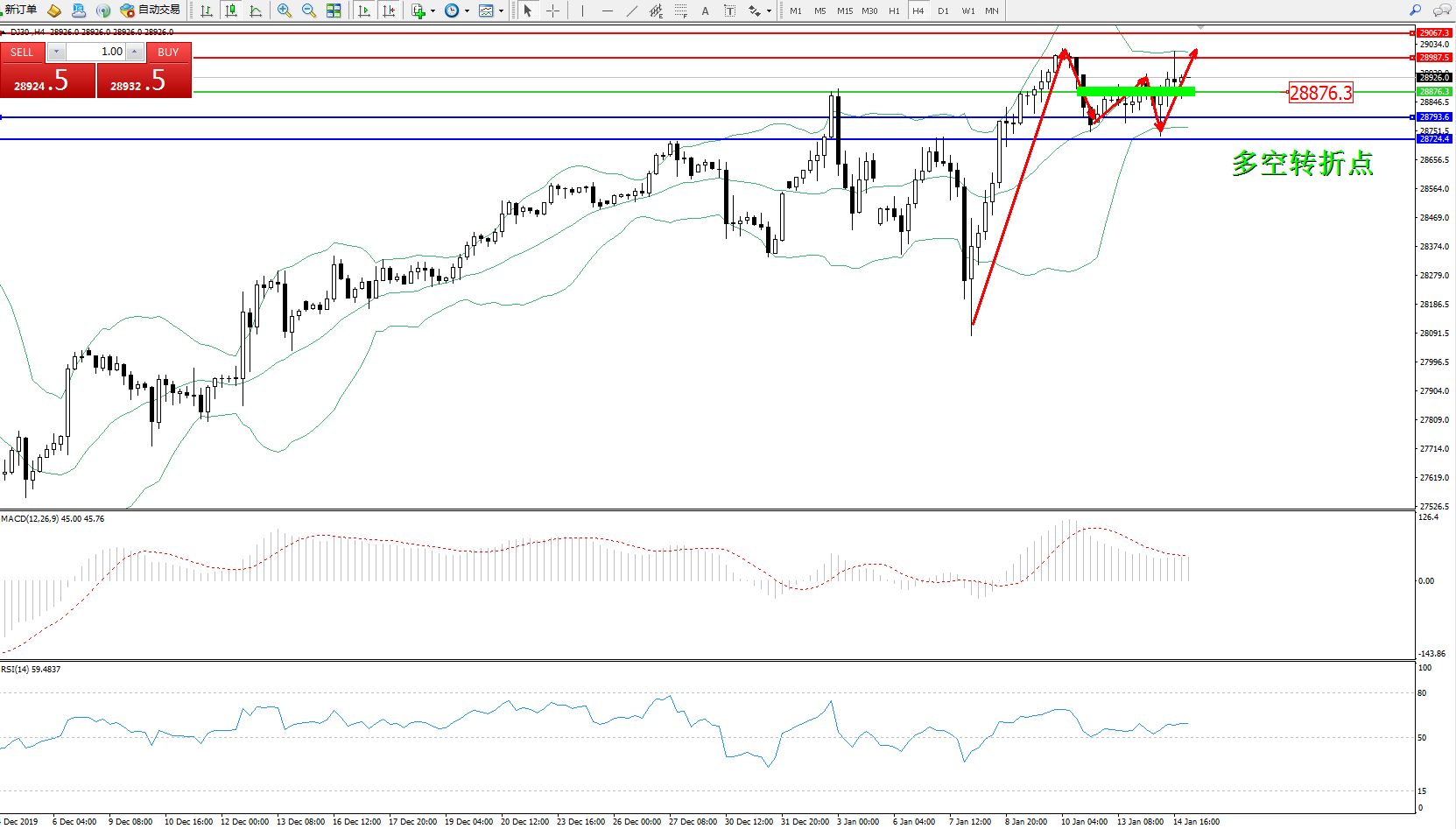 道琼斯指数1月14日(周二)收盘上涨32.20点,涨幅0.11%,报28939.20点。期待已久的美中初步贸易协议即将签署,美国12月消费者物价指数(CPI)小幅上涨,家庭支付的医疗费用增加,但核心通胀放缓,支持美联储维持利率不变至少到今年底的愿望。同样受到投资者关注的还有美联储将于周三发布的美国经济状况褐皮书。