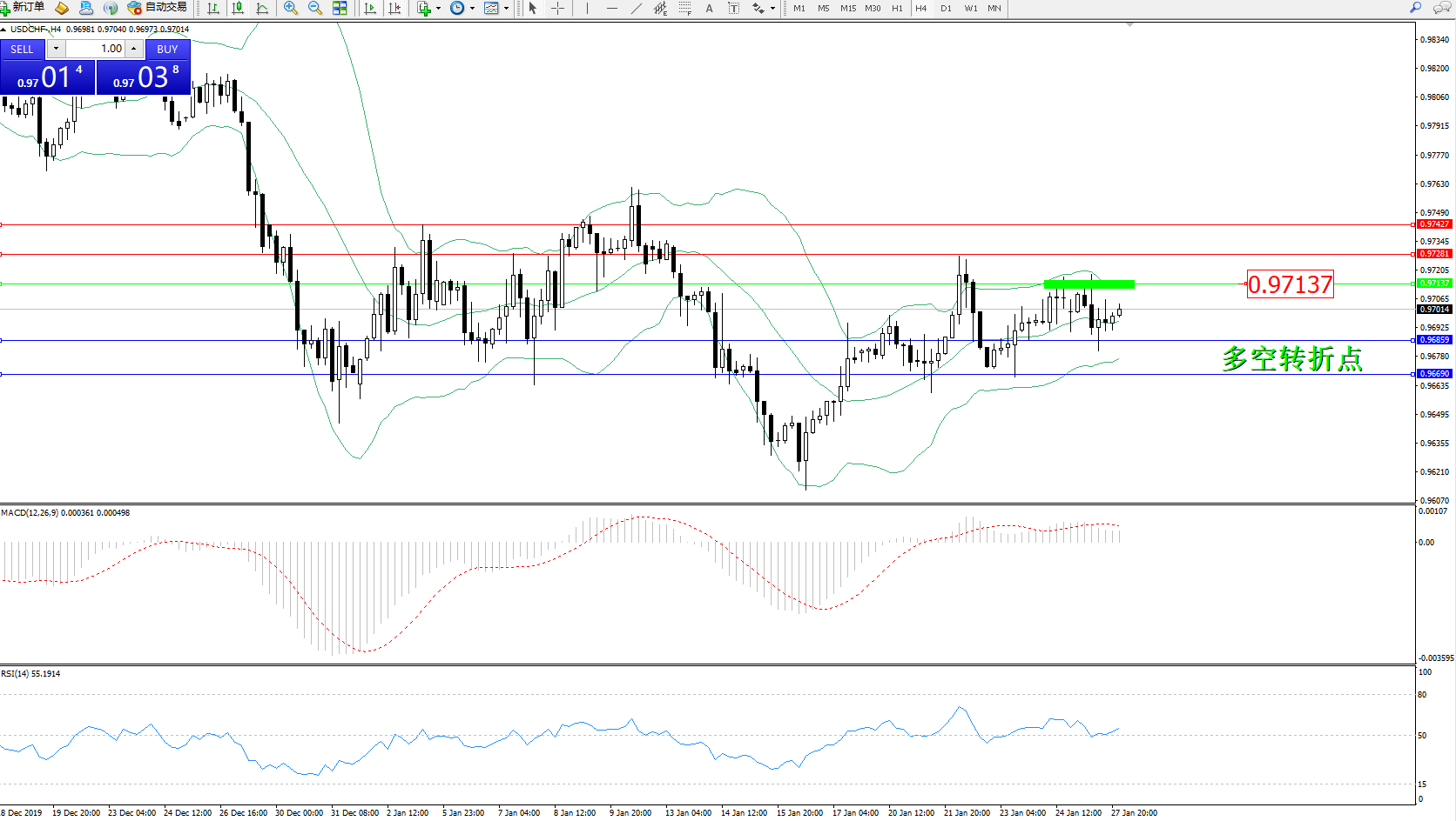 交易策略:0.97137下方看跌,目标0.96859、0.96690
