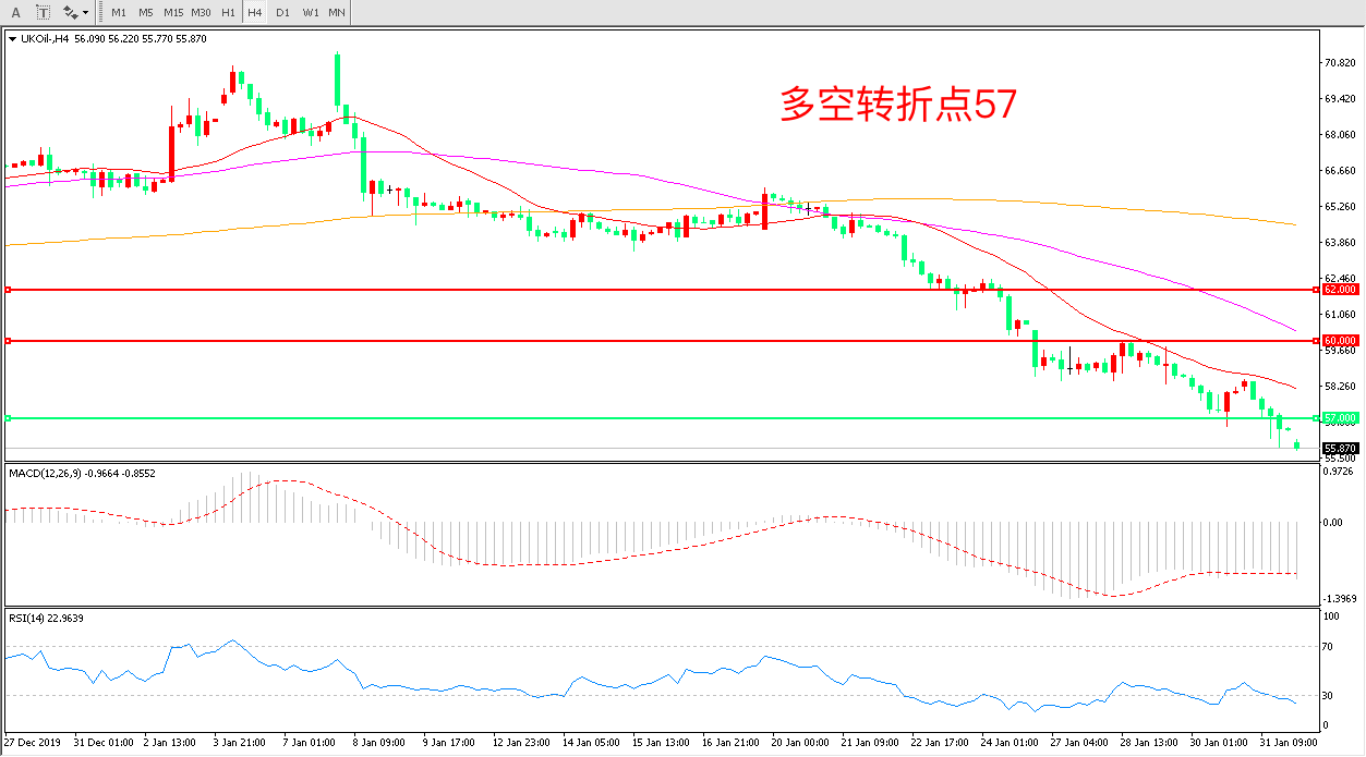 交易策略:在57.00 之下看跌,目标55.00 52.00