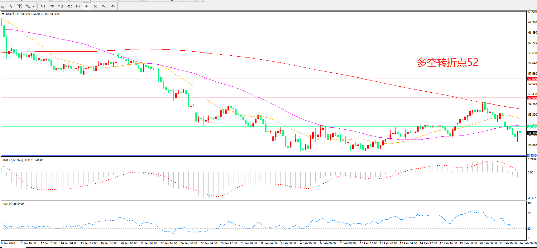 周一(2月24日),国内新冠肺炎疫情的扩散蔓延得到有效控制,但意大利、韩国和伊朗周末均报告确诊病例大幅上升,令市场陷入恐慌,风险资产遭到大幅抛售,美国WTI原油收跌3.7%,报51.43美元/桶,创2月13日以来最低收盘。