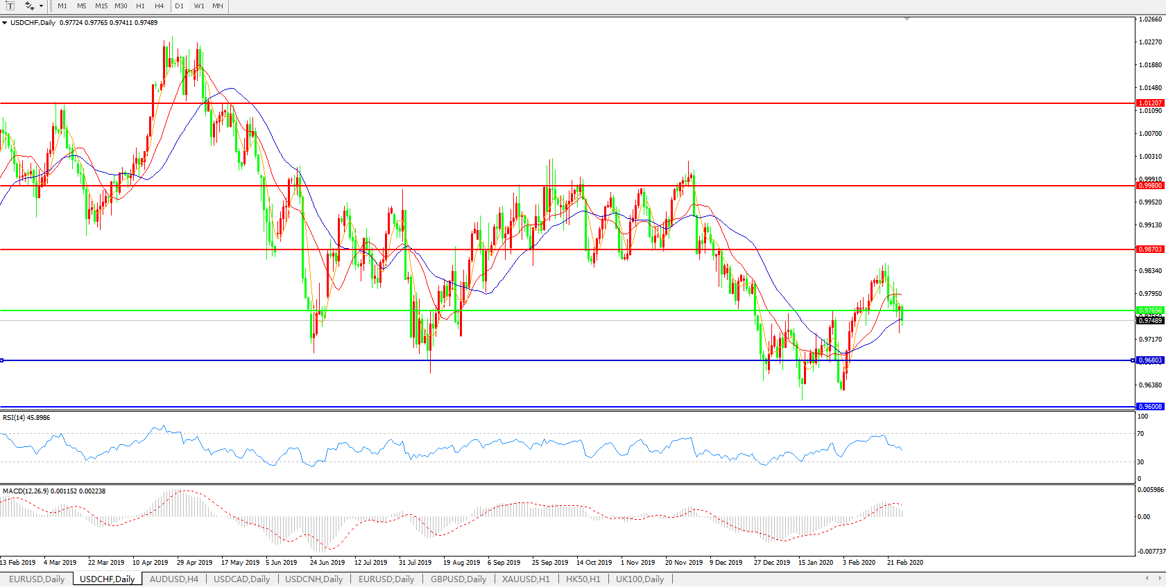 美元指数上涨0.17%至99.14,疫情忧虑带动美债大涨,推动指标10年期美债收益率连续第二日刷新纪录低位。法国巴黎银行北美外汇策略主管Daniel Katzive表示,考虑到我们在债市和股市方面看到的情况,你可能会预期美元兑日元汇率会出现更大幅度的下跌;相互角力最终令美元当日维持不变。Katzive称,今年美元走强的潜在趋势……这似乎基本上是因持续较宽的收益率差,公债收益率大幅下降,这在一定程度上减少了利差;欧元和日元等融资货币面临上行压力,因风险部位被回补,因此有两股互相抵消的力量。如果风险缓和下来,我认为美元可能会上涨一些,特别是如果市场出脱已消化的对美联储放宽政策的预期。德商银行FICC技术分析研究团队负责人Karen Jones认为,9月和10月低位0.9841/44,以及200日均线0.9954是美元兑瑞郎面临的强势阻力位。目前该货币对难突破阻力位0.9841,或面临进一步走低的风险。若价格低于0.9746(55日移动均线),上行的压力或减少,并使我们有足够理由重新将目标位定在1月低点的0.9613和2018年9月低点0.9543。