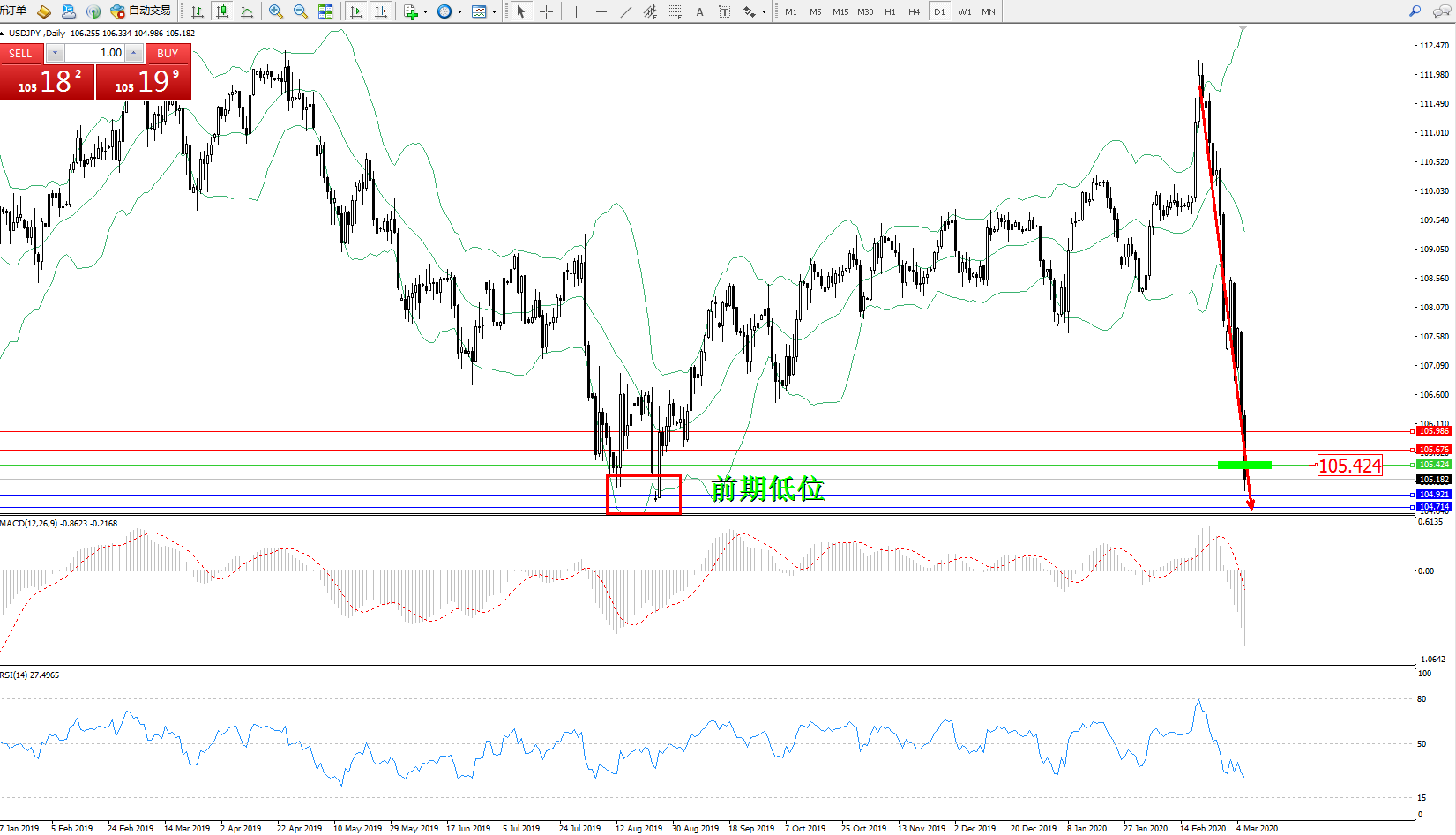 美元兑日元跌0.73%至105.38;最低触及104.99;虽然日本国内也发生了疫情,而且2月中旬日元因此还遭到一波抛售。但从2月底开始,投资者发现,日本国内的疫情似乎并不严重,而日元接下来则体现出避险货币的属性。在美联储大幅度降息的背景下,虽然日本央行承诺推出更多的宽松措施以应对危机,但无奈日本央行下调利率的空间太小,这就收窄了美日两国的利率差异,投资者重新购入日元避险,从而大幅度压低了美日汇率。日本央行称将提供流动性确保金融稳定。由于疫情蔓延导致投资者担忧情绪升温,全球股市大幅下挫。日本央行行长黑田东彦表示将努力提供充足的流动性并确保金融市场的稳定。
