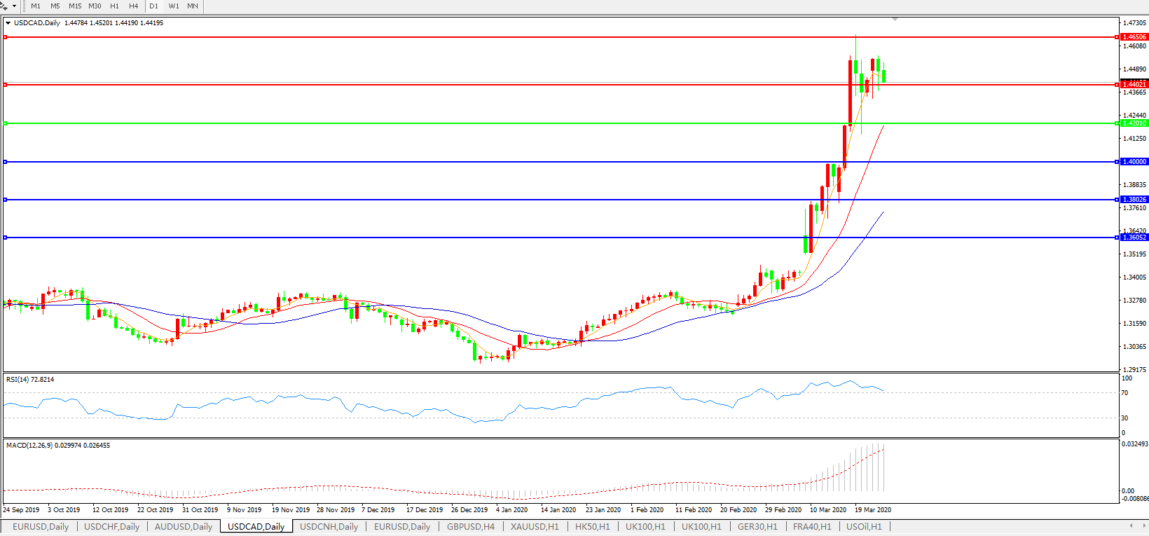 美元兑加元USDCAD    日线图: