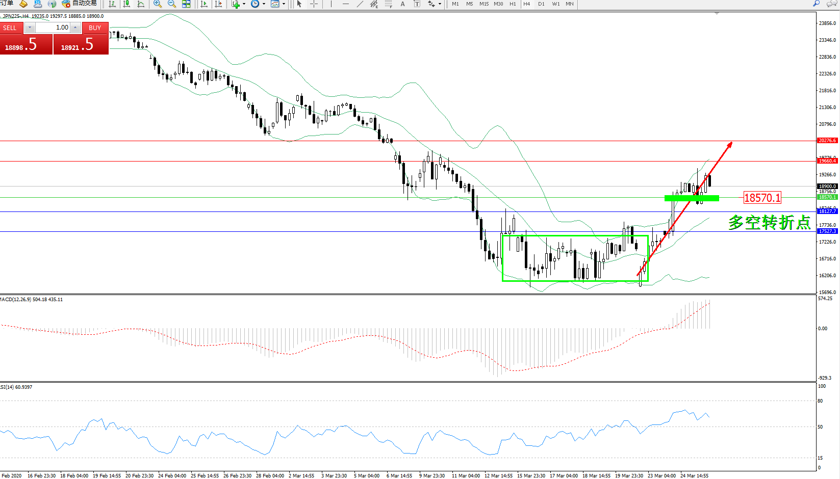 日经225指数325日(周三)收盘上涨1470.00点,涨幅8.13%,报19547.50点。美国国会接近就2万亿美元经济刺激方案达成协议提振市场风险情绪,隔夜欧美股市大涨,道指更是暴力拉升逾11%,稍早日本央行公布了316日货币政策会议委员意见摘要,必须加强货币宽松以阻止企业和家庭信心的恶化。该到政府支持经济的时候了,鉴于新冠病毒在全球范围内的传播,其对日本经济的影响可能是长期和巨大的,考虑到欧美国家的新冠病毒可能造成的巨大影响,即使海外经济复苏,日本经济也可能继续停滞不前。此外日本央行在未来提供2万亿日元的政府证券回购和提供4千亿日元的政府证券回购。