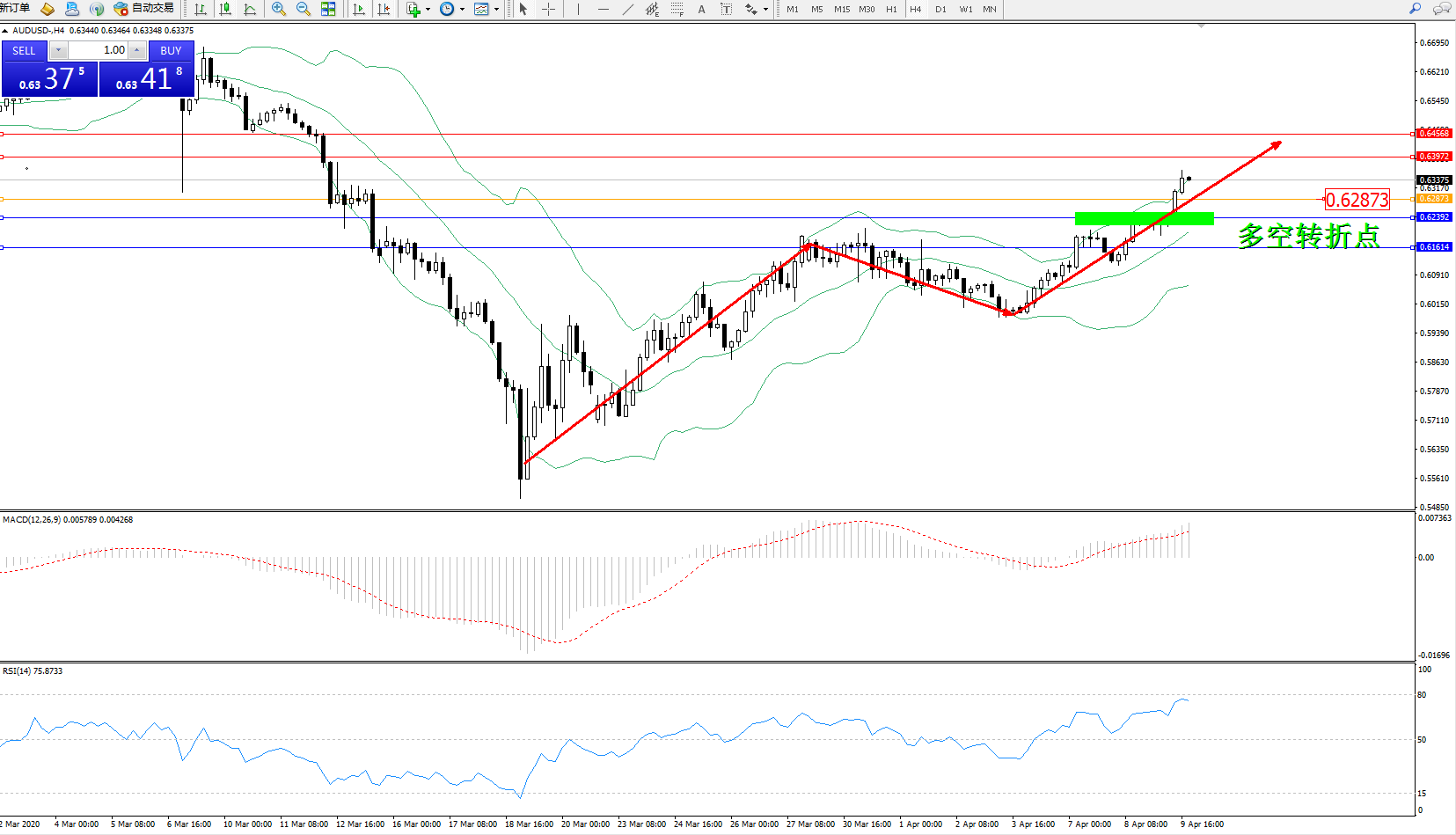 交易策略:0.62873上方看涨,目标0.63972、0.64568