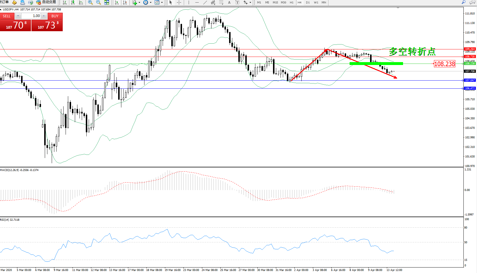 多空转折点:108.238