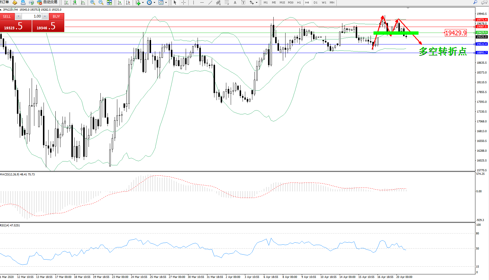 日经225指数420日(周一)收盘下跌249.26点,跌幅1.25%,报19648.00点。日本3月出口下滑幅度为近四年来最大,因包括汽车在内的对美国出口创2011年以来最大降幅,凸显出新冠疫情对全球需求和贸易的破坏。周一的低迷数据凸显出安倍政府在应对经济活动崩跌方面面临的挑战。预计经济活动重挫将导致全球经济陷入1930年代大萧条以来最严重下滑。日本财务省称,日本编制了25.7万亿日元的额外预算,用于经济刺激;将支付12.9万亿日元用于向家庭派发现金。