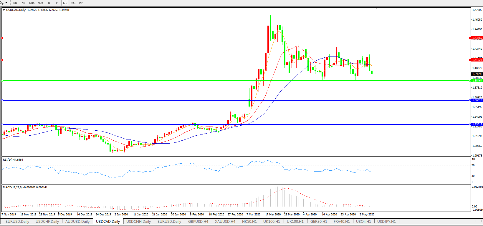 美元兑加元USDCAD    日线图: