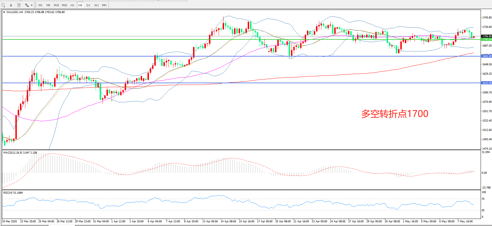 交易策略:  在1700.00 之上看涨,目标1750.00   1785.00