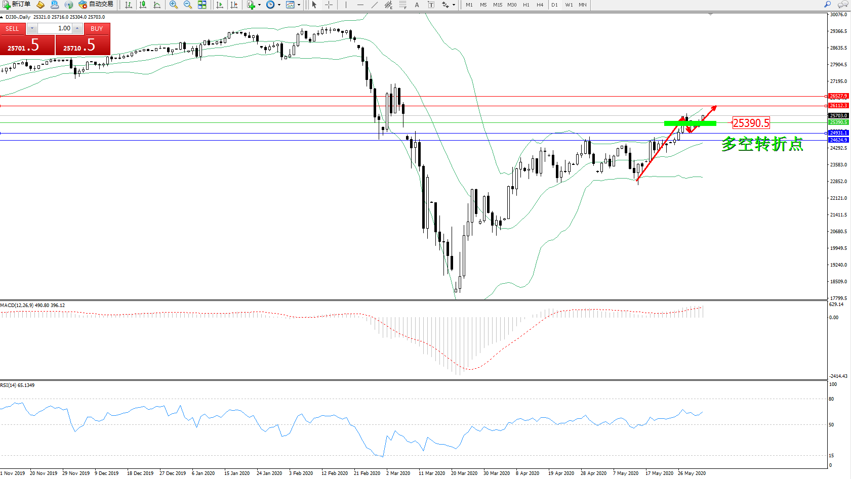 道琼斯指数6月2日(周二)收盘上涨267.60点,涨幅1.05%,报25742.65点。市场继续关注美国重启经济、各地的抗议活动及国际地缘政治关系。美国国会预算办公室预计美国经济可能需要十年才能恢复。风险市场的好日子仍在继续,尽管涨势强劲,但随着股市本轮涨势范围扩展到美国以外的地区,这种势头很可能会持续下去。预计美联储会采取更为持续的QE;美联储会确定下每个月800亿到1200亿美元的美国国债、250亿到350亿美元的抵押支持债券;此外,美联储前瞻指引也可能出现变化。美联储等待通胀达到2%的目标再加息看起来和美联储官员们的表态是一致的,即在这个周期的扩张阶段通胀目标看向2%至2.5%。