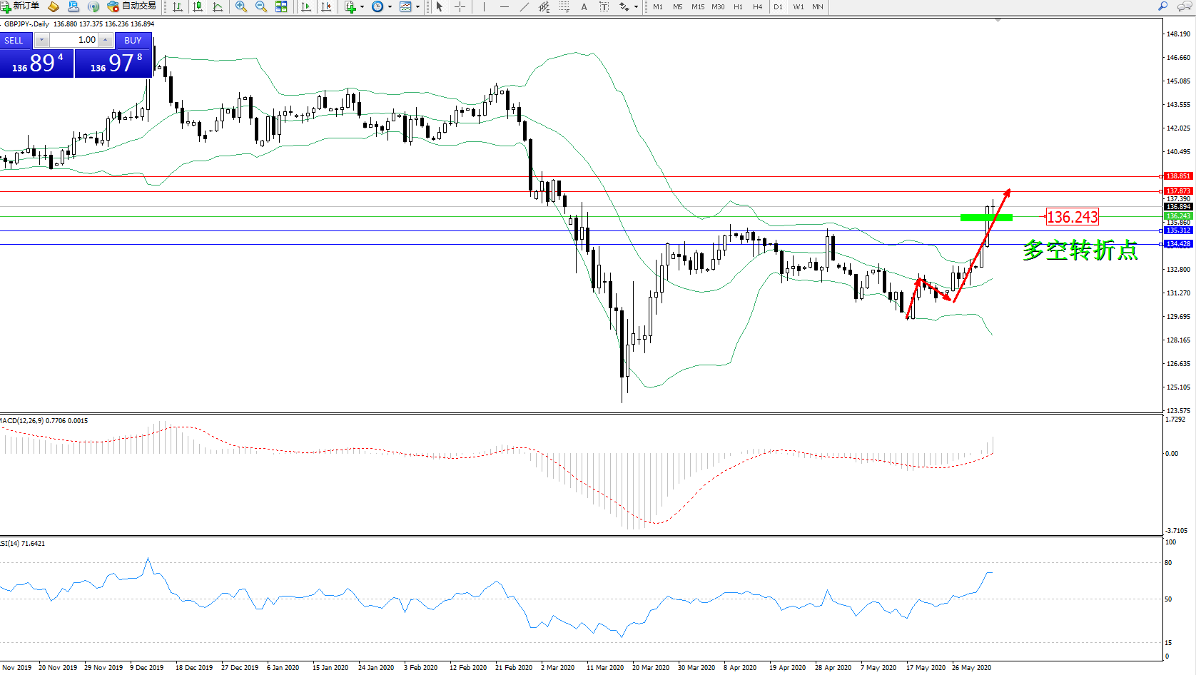 技术点评:多头动力处于布林带指标中上轨区间震荡后,延续上轨附近持续拉升上扬,且突破上轨附近压制,布林带指标呈张口走势中,后续动力有进一步上探态势,MACD指标处于0轴线上方多头区域持续震荡上扬中,RSI指标处于50均衡线上方拉升态势持续中;