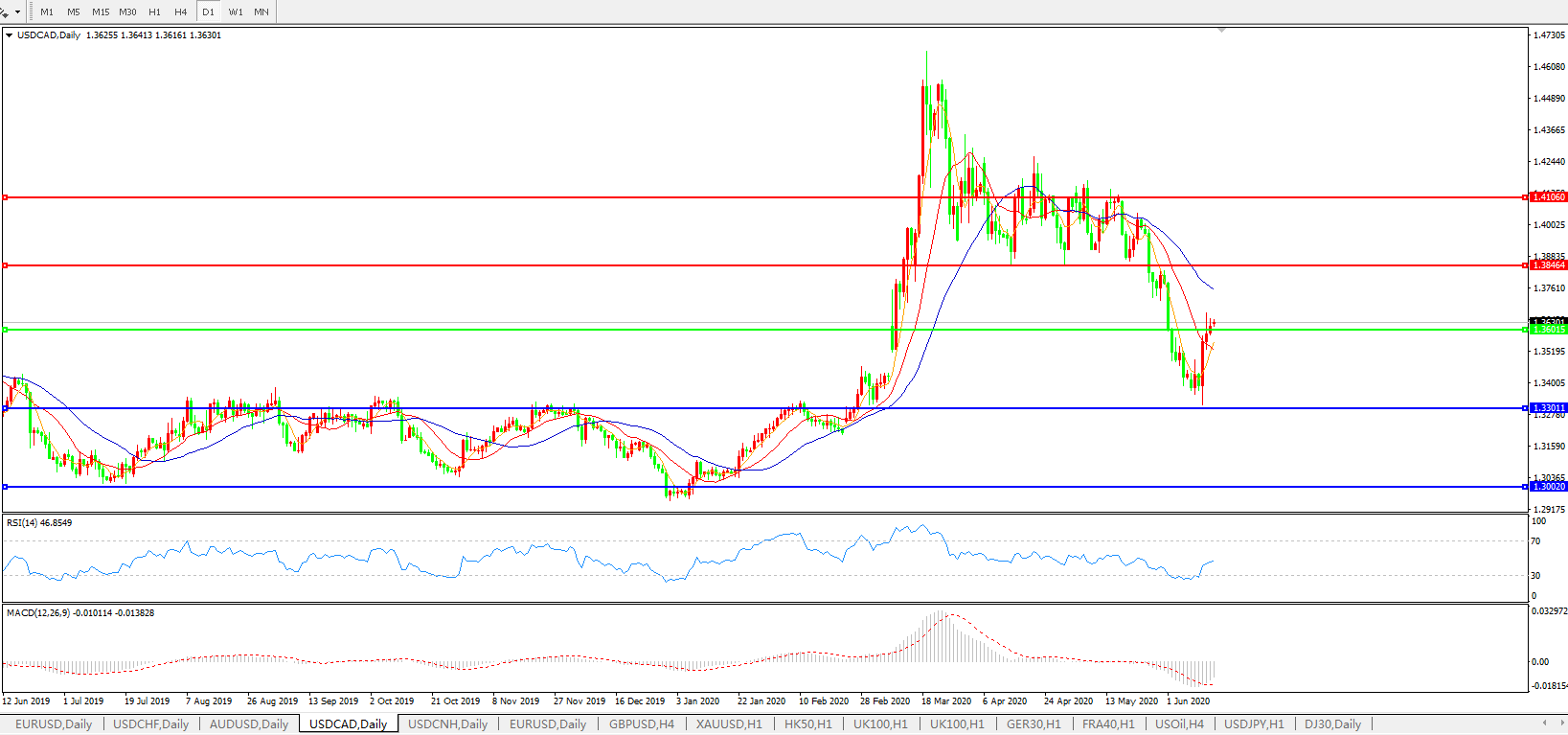 备选策略:在1.3600之下,看跌,目标价位为1.3300、1.3000