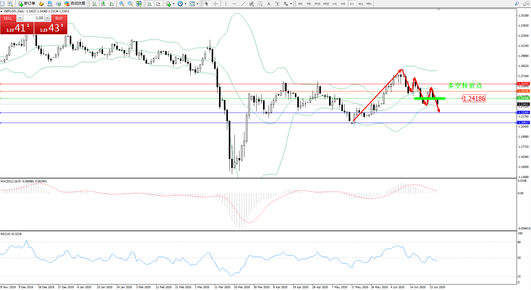 交易策略:1.24186下方看跌,目标1.222651.20917