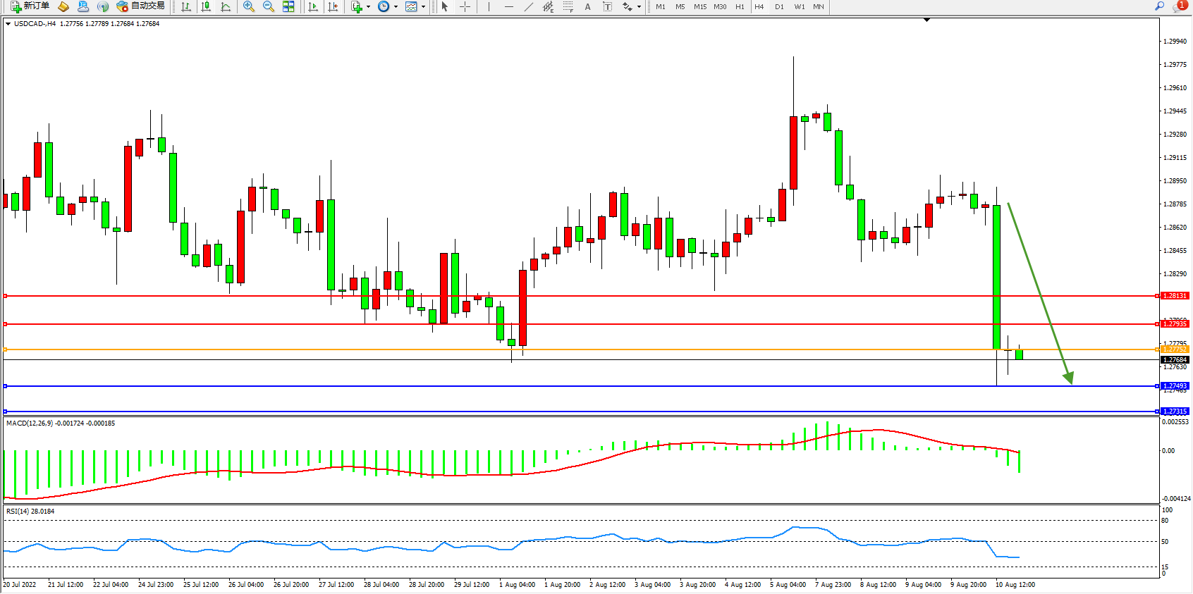 美元兑加元维持1.27684附近震荡, 美国至8月5日当周EIA战略石油储备库存为1985年4月26日当周以来最低。美国至8月5日当周除却战略储备的商业原油库存为2021年12月3日当周以来最高。