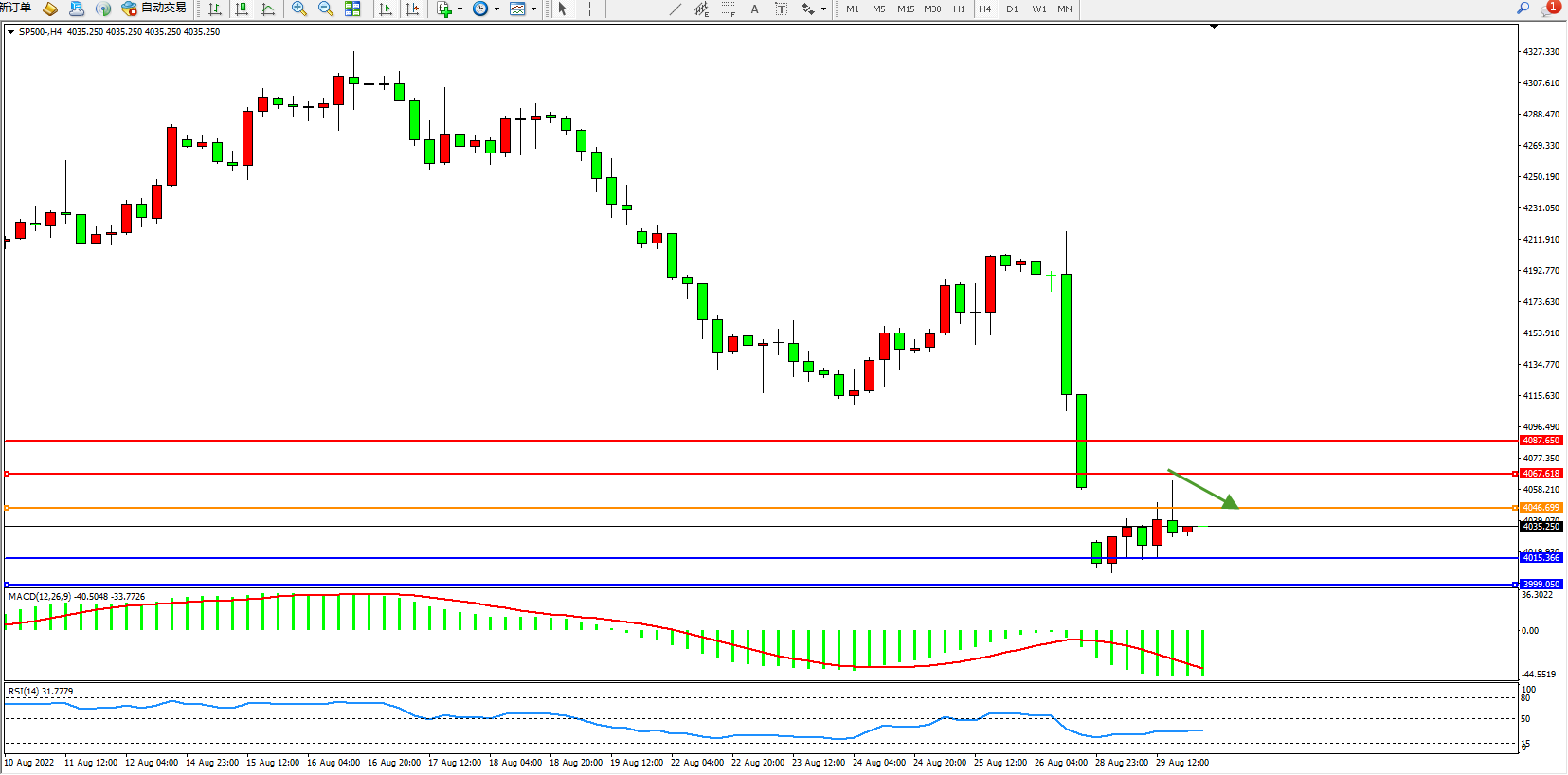 标普500指数8月29日(周一)收盘下跌26.41点,跌幅0.65%,报4031.25点;美联储官员承认,由于利率上升导致经济放缓,企业调整人员配置计划作为应对措施,他们为遏制通胀肆虐而作出的努力可能会导致就业岗位减少,但就业损失会达到何种程度目前不得而知。