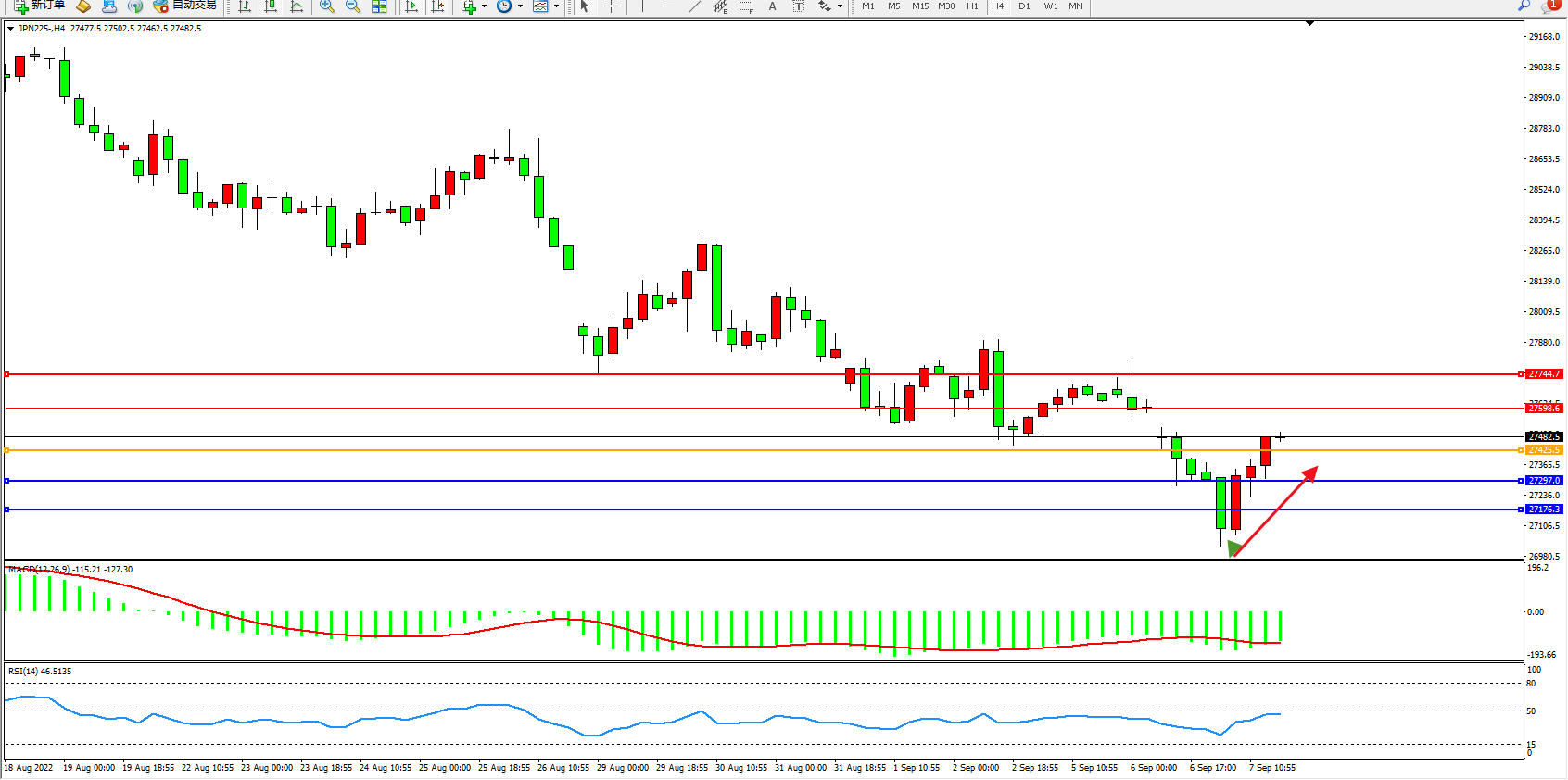 日经225指数9月7日(周三)收盘下跌192.01点,跌幅0.70%,报27434.50点。日本首相岸田文雄接连公布国内确诊患者缩短疗养期等着力于与新冠共存的措施,在观光方面也希望访日外国游客恢复。然而,必须取得签证等限制措施仍保留。