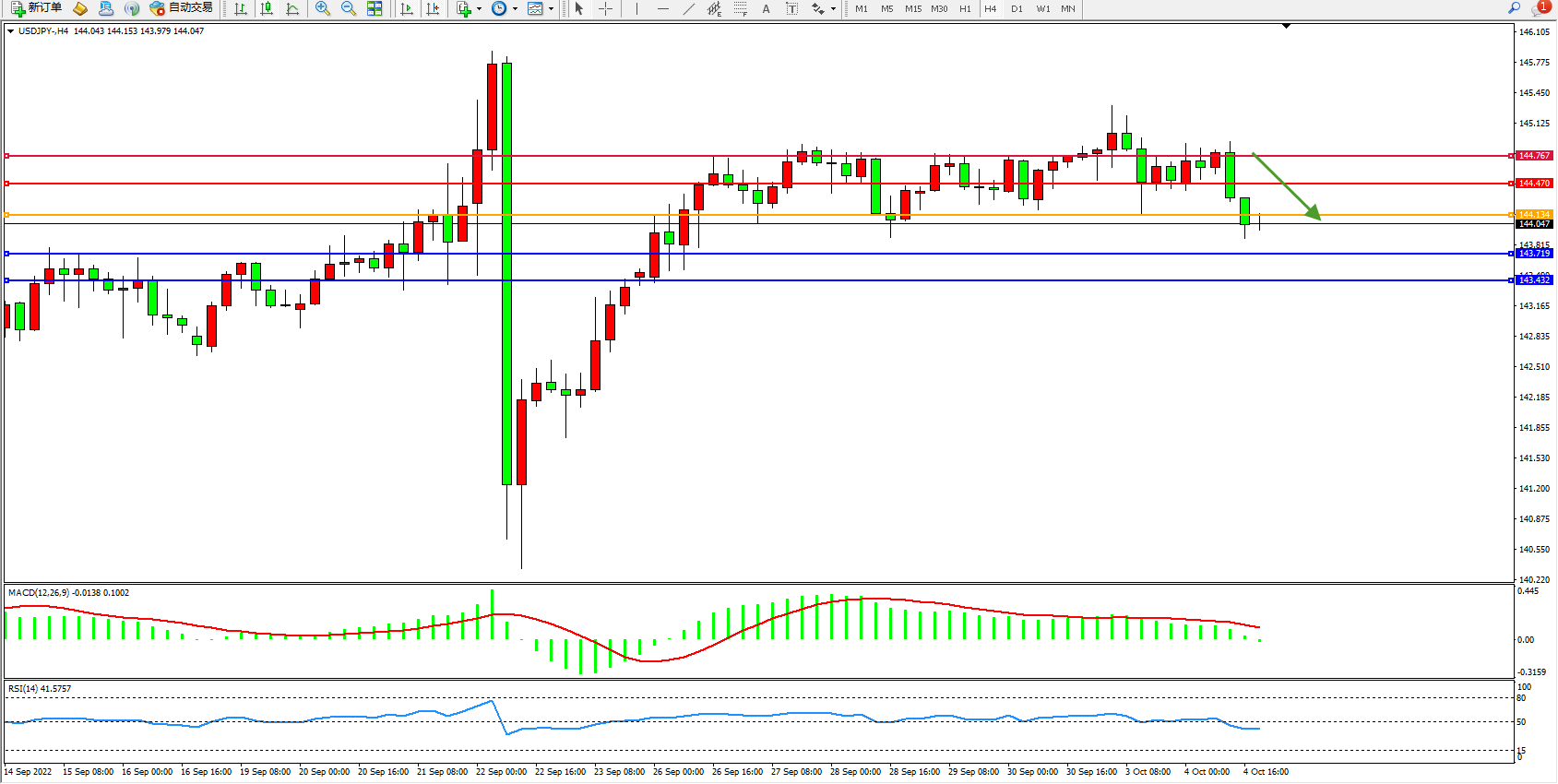 交易策略:144.134下方看跌,目标143.719、143.432