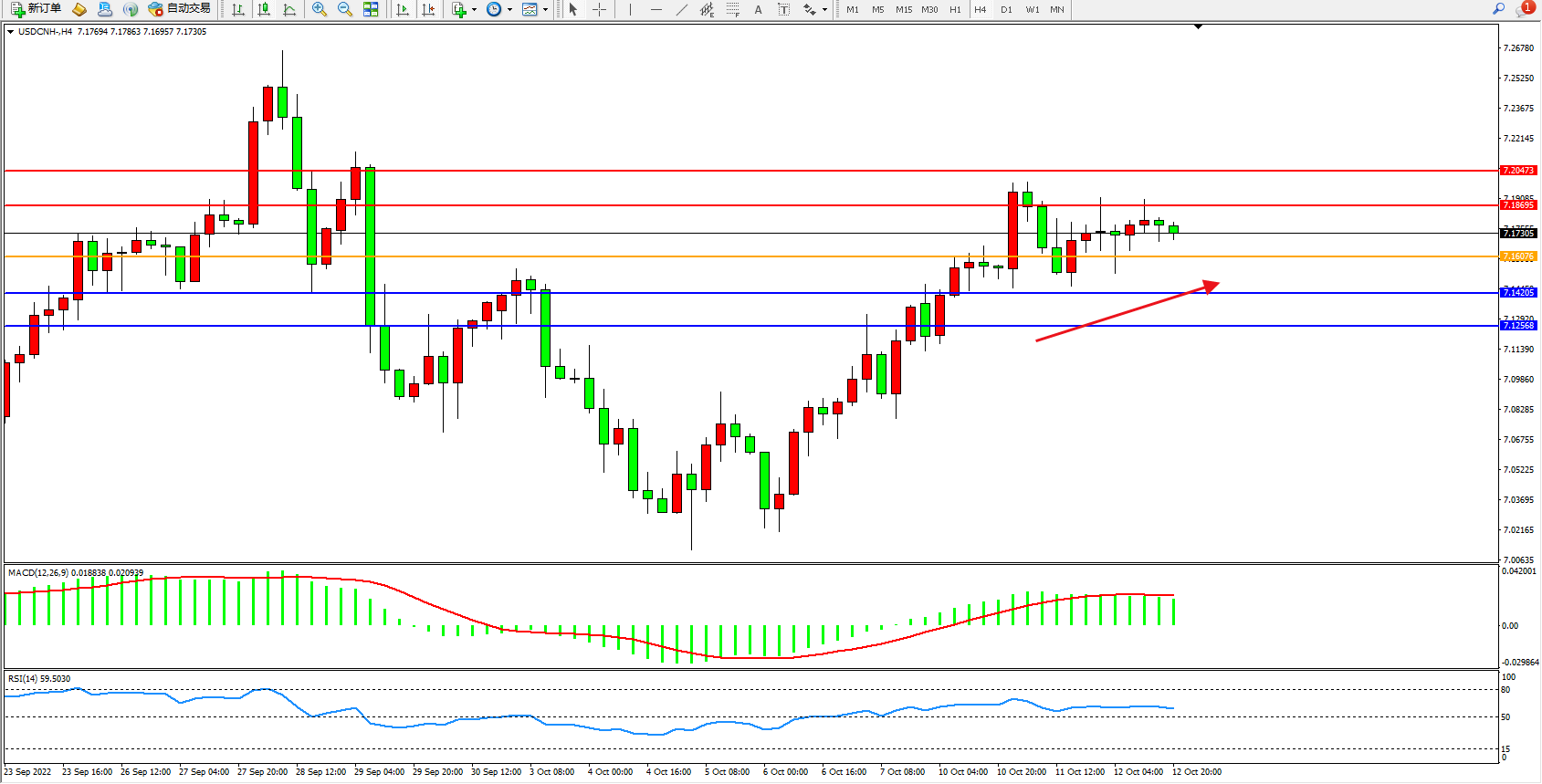 交易策略:7.16076上方看涨,目标7.18695、7.20473