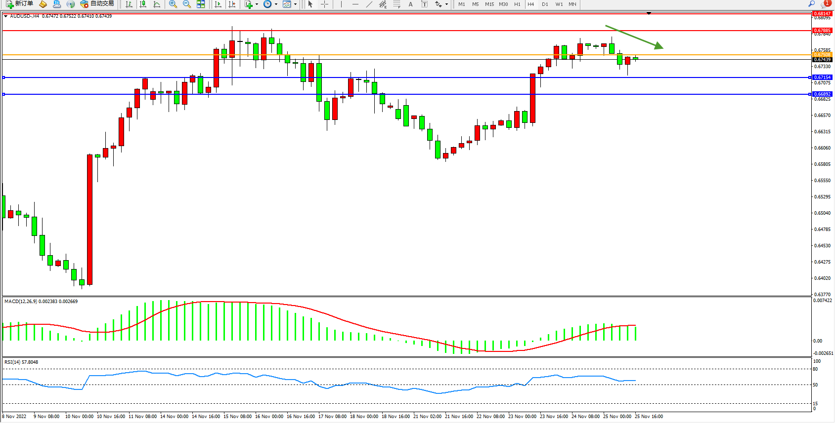 交易策略:0.67508下方看跌,目标0.67154、0.66892