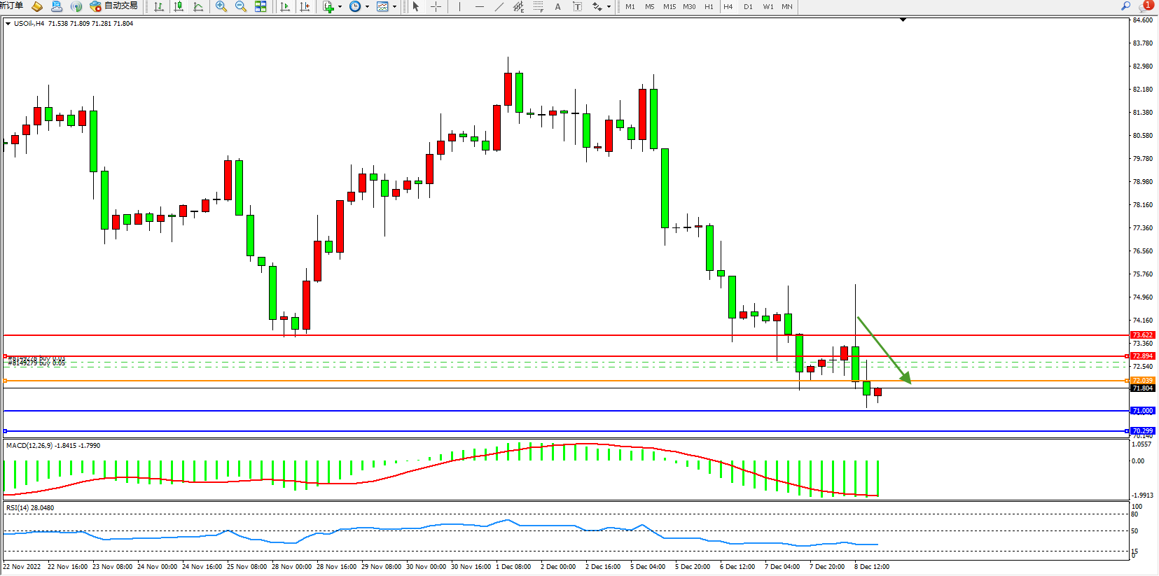 原油维持71.804附近震荡,随着更多买家放弃采购俄罗斯的原油,俄罗斯明年的原油总产量将减少140万桶/日。根据国际能源机构的数据,今年俄罗斯的平均日产量约为1100万桶。