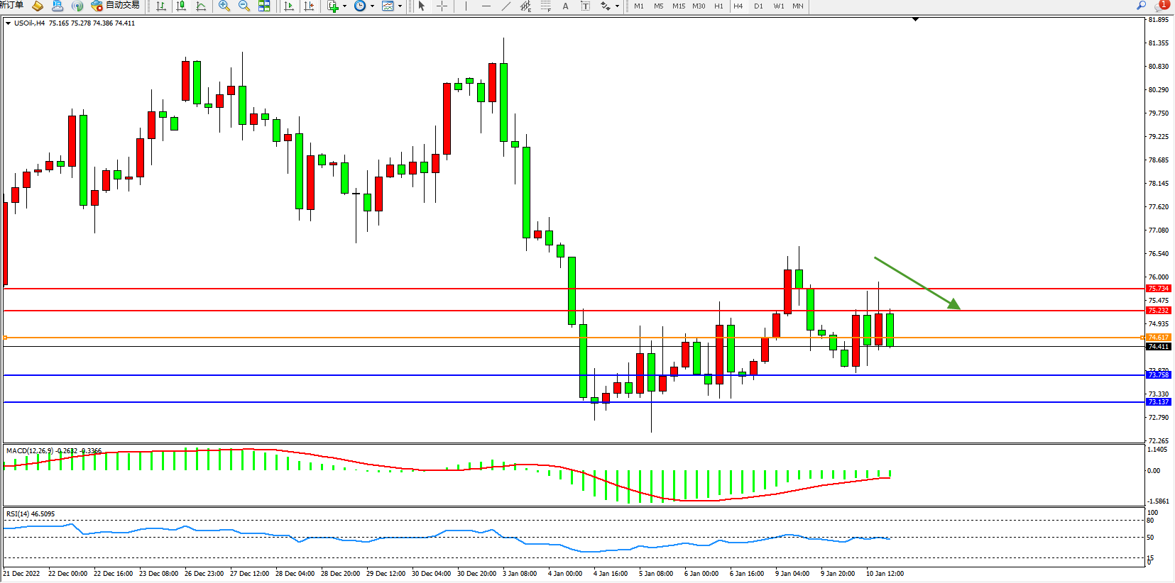 原油维持74.411附近震荡,虽然中国放宽了防疫政策,一度提升原油需求预期,美元走弱也给油价提供支撑,但美联储官员的鹰派讲话,令市场担忧全球最大石油消费国美国进一步加息将放缓经济增长、限制燃料需求,全球股市普遍受到抑制,油价短线面临一定的下行风险。