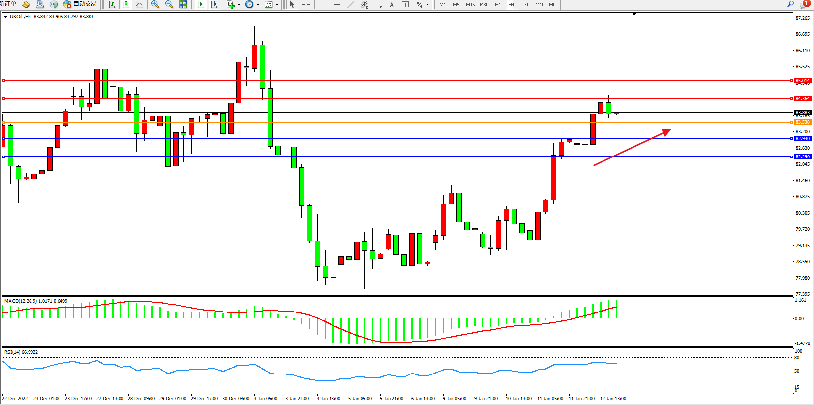布油维持83.883附近震荡,市场对2023年燃料需求增长的乐观情绪继续升温,市场还担忧欧美继续对俄罗斯实施更多制裁,供给面可能进一步收紧,高盛也上调油价预期,短线油市偏向多头。
