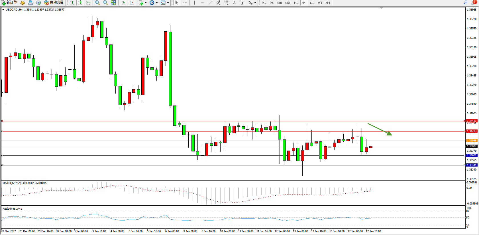 交易策略:1.33996下方看跌,目标1.33662、1.33441