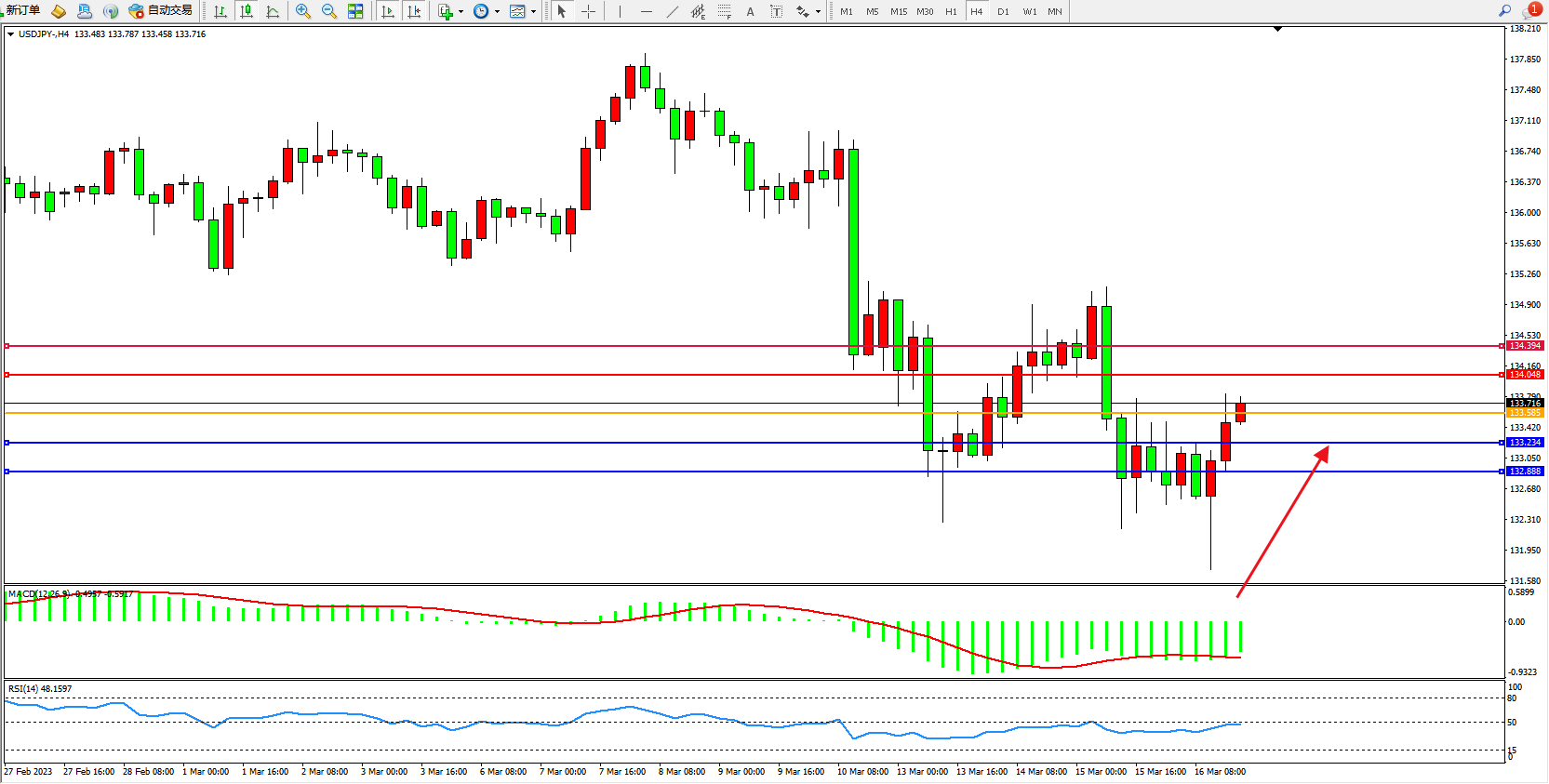4小时图看:低位多头动力持续震荡拉升,短期多头情绪开始涌现,市场不断震荡向上移动中,MACD指标处于空头区域维持整理,RSI指标处于50均衡线附近弱势徘徊;