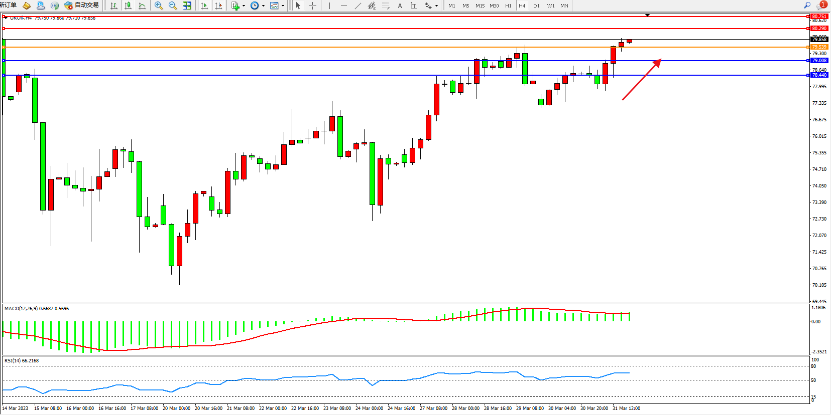 交易策略:79.539上方看涨,目标80.290 80.751