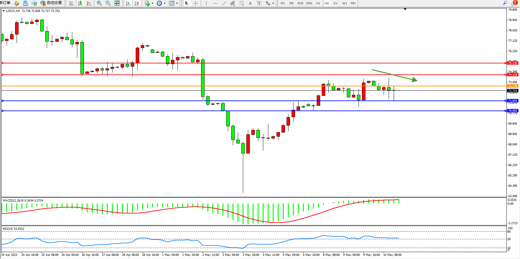 4小时图看:短期窄幅震荡平移,多空动力短期处于焦灼状态,MACD指标处于0终须爱你上側弱势整理,RSI指标处于50均衡线上側弱势徘徊;