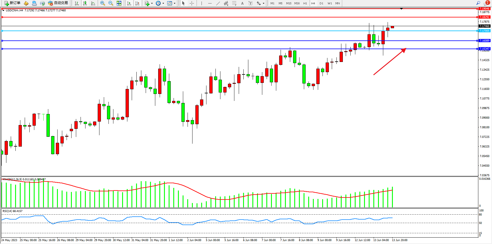 备选策略:7.17005下方看跌,目标7.16089  7.15347