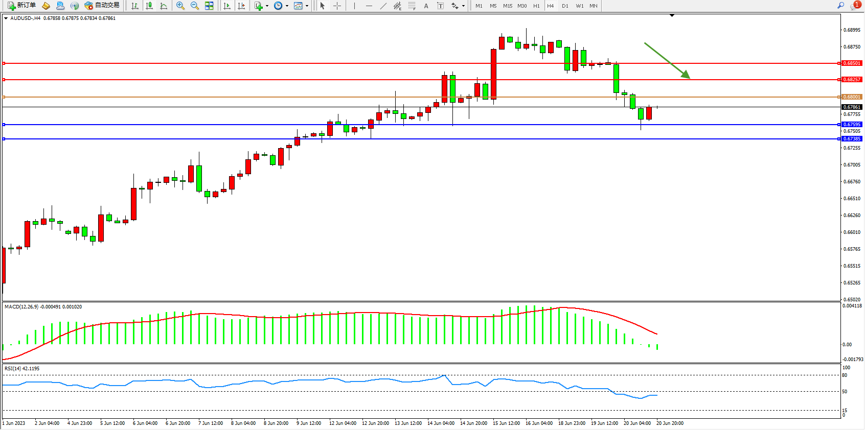 阻力位:0.68257 0.68501