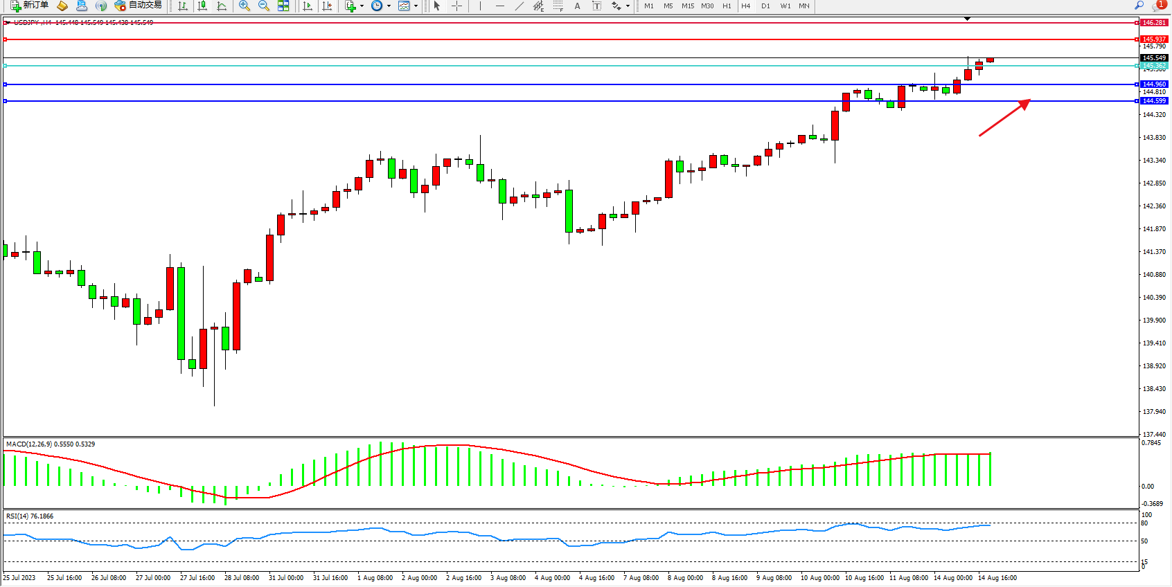 美元兑日圆维持145.549附近震荡,日本的低收益率使日圆很容易成为做空者和融资交易的目标,日本和美国之间不断扩大的利差导致日圆持续疲软。