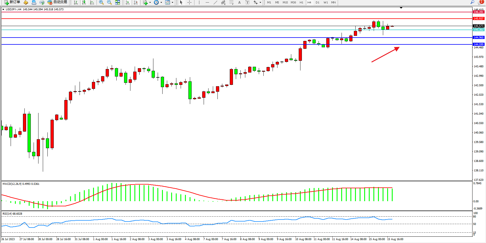 交易策略:145.362上方看涨,目标145.937  146.281