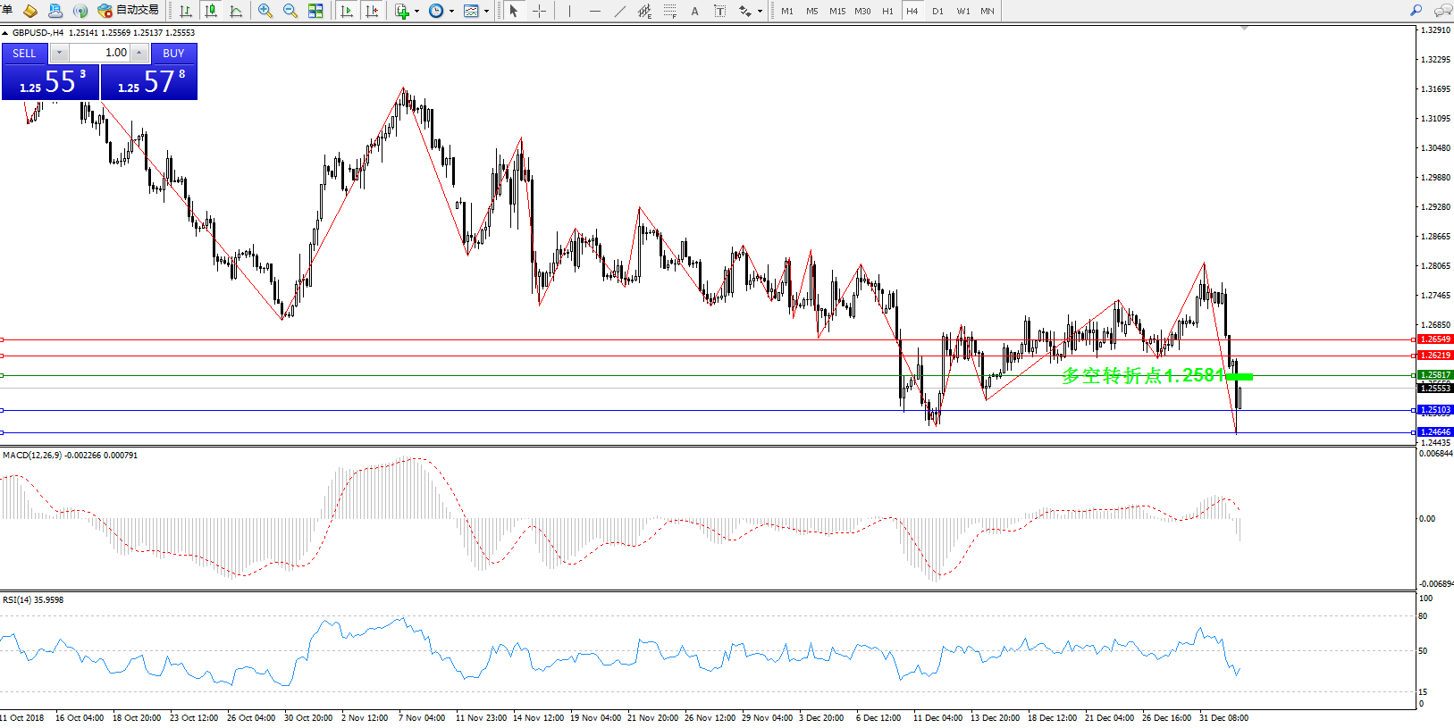 交易策略:1.2581下方看跌,目标1.2510、1.2464