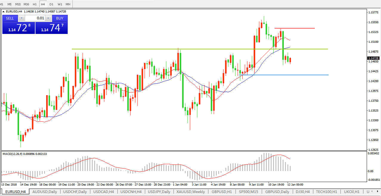 交易策略:在1.1495之下,看跌,目标价位为 1.1440 ,然后为1 .1400