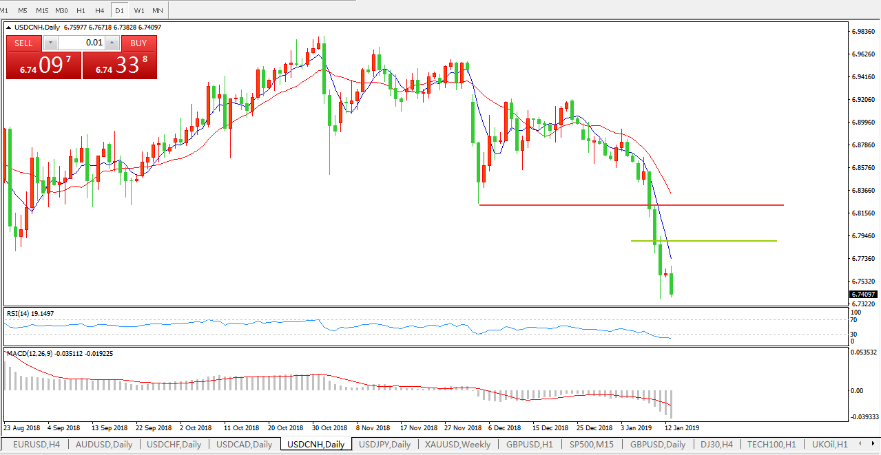 美元兑人民币USDCNH日线图: