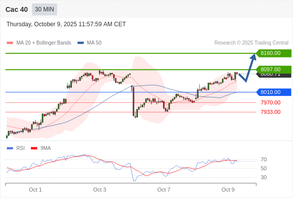 在 8010.00 之上,看涨,目标价位为 8097.00 ,然后为 8160.00 。