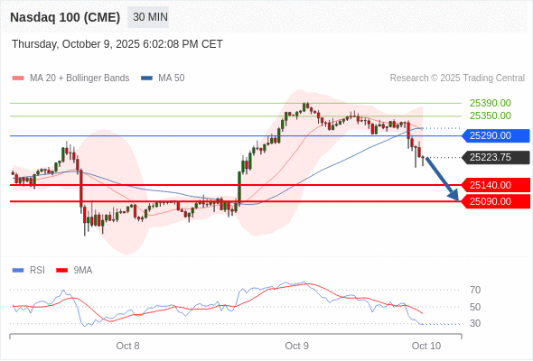 在 25290.00 之下,看跌,目标价位为 25140.00 ,然后为 25090.00 。