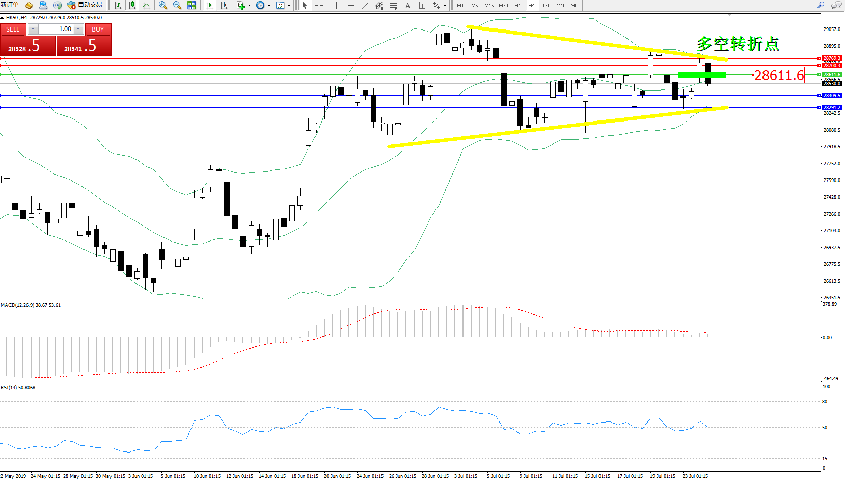 香港恒生指数7月24日(周三)收盘上涨57.56点,涨幅0.20%,报28524.04点;跟随外围股市造好恒指高开,并逐步扩大升幅,最高触及28764。美联储降息预期继续影响股市情绪,美股上涨逼近历史新高,暗示市场风险偏好较高,同时受市场对大型科技股业绩乐观情绪以及中美有望下周重启贸易谈判的影响。